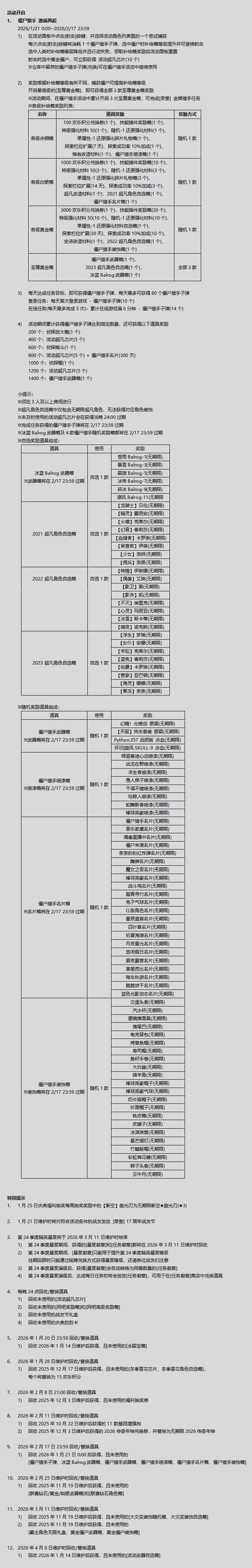 - 【公告】1月14日更新维护公告[已结束][01/14]