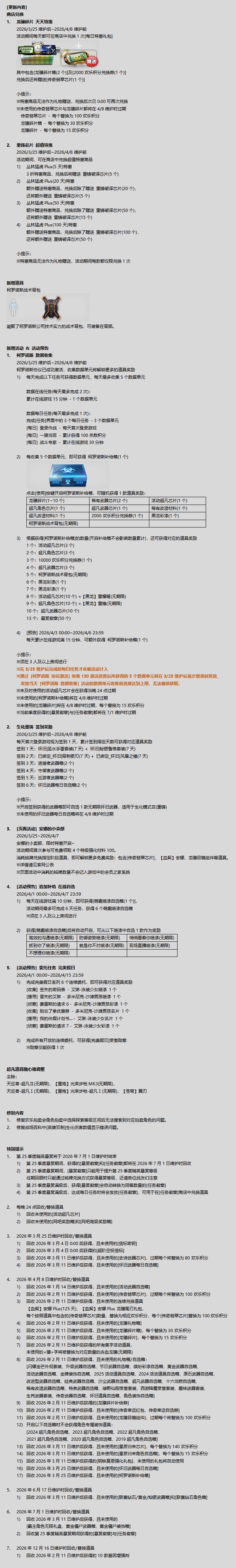 - 【公告】3月25日更新维护公告[03/24]