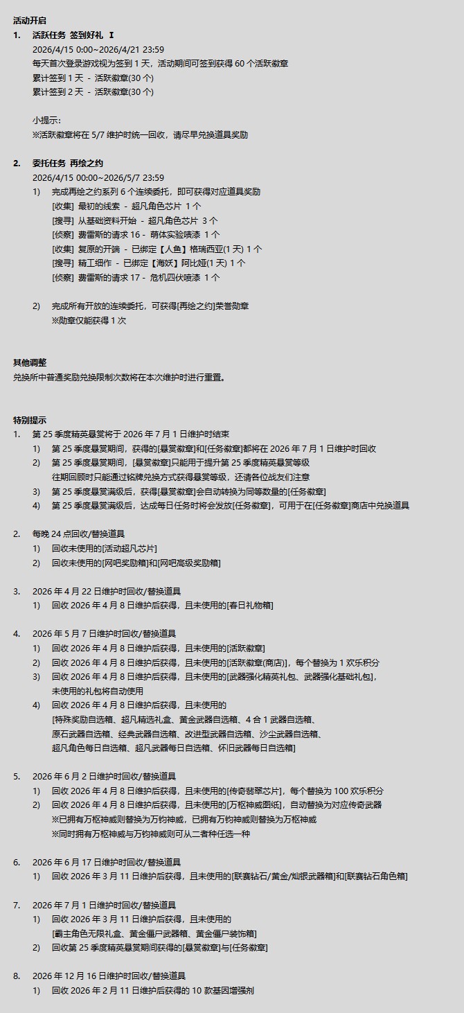 - 【公告】VIP专享生日礼包组成调整公告[04/13]