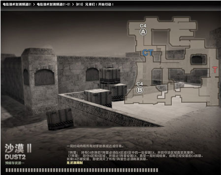 T阵营必须在指定的地点装置C4炸弹爆破目标,而CT阵营的任务则是阻止T阵营的行为。