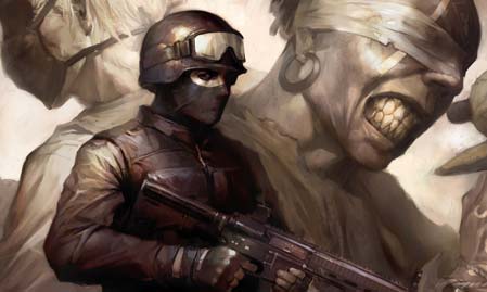 1) 人类(人类的生命值较低,移动速度较慢,但是能够在远距离使用枪械攻击敌军)