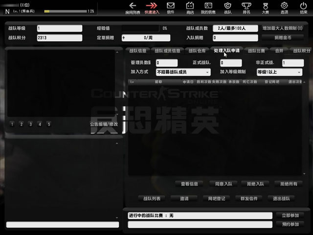 这里会显示所有申请入队人员的信息,并会显示每个申请人的概略情况。这里还会显示整个战队的管理人员数量、正式成员的数量和非正式队员数量。申请加入方式和加入等级限制只有战队队长可以操作。